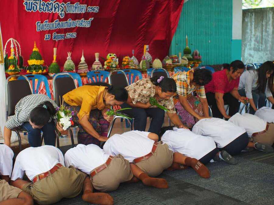 13 มิ.ย.62 รร.เมืองแกพิทยาสรรค์ จัดกิจกรรมพิธีไหว้ครู ประจำปีการศึกษา 2562 S:0