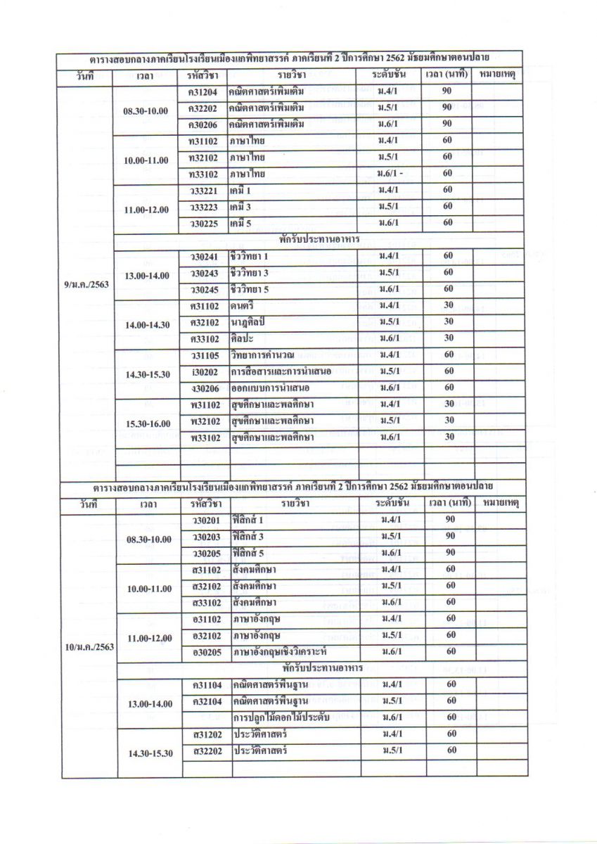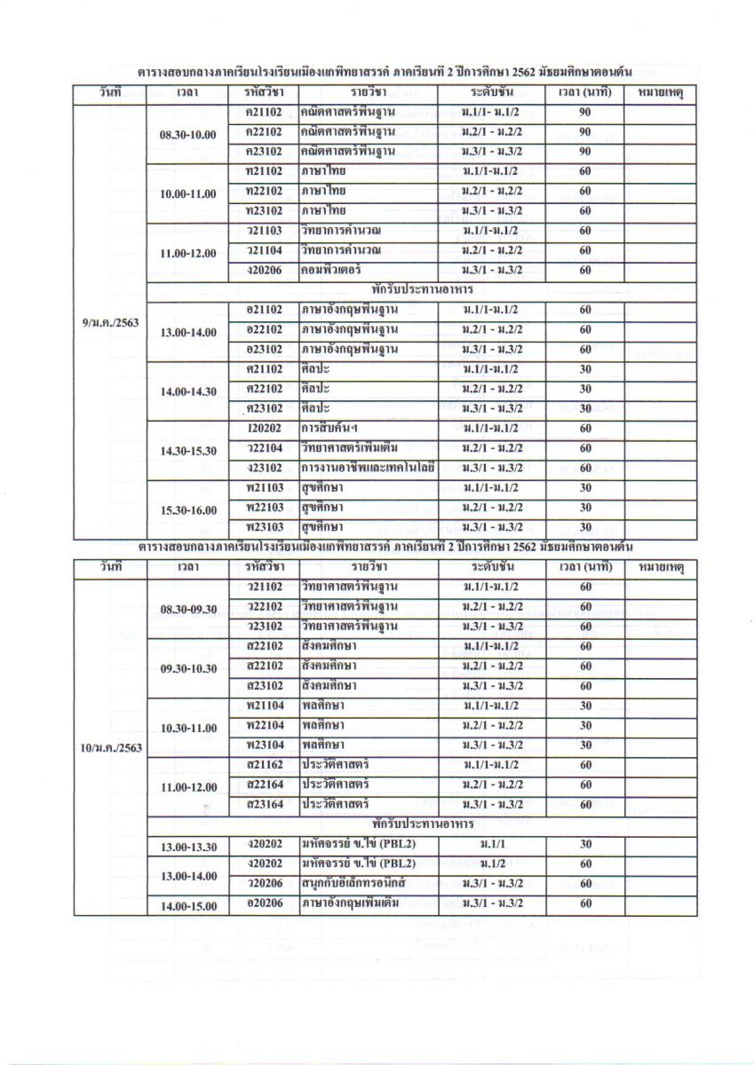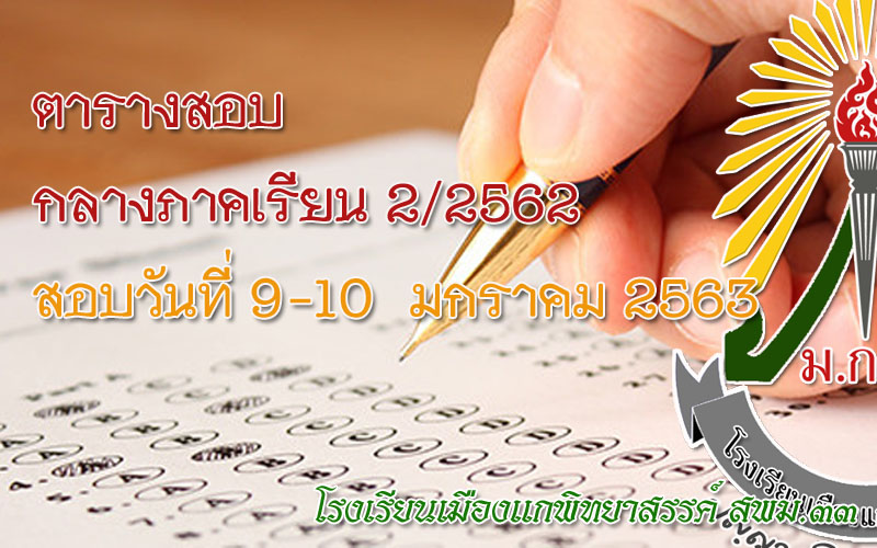 โรงเรียนเมืองแกพิทยาสรรค์  กำหนดวันสอบกลางภาคเรียนที่2/2562 วันที่ 9-10 มกราคม 2563