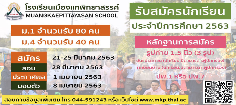รับสมัครนักเรียนใหม่ปีการศึกษา2563