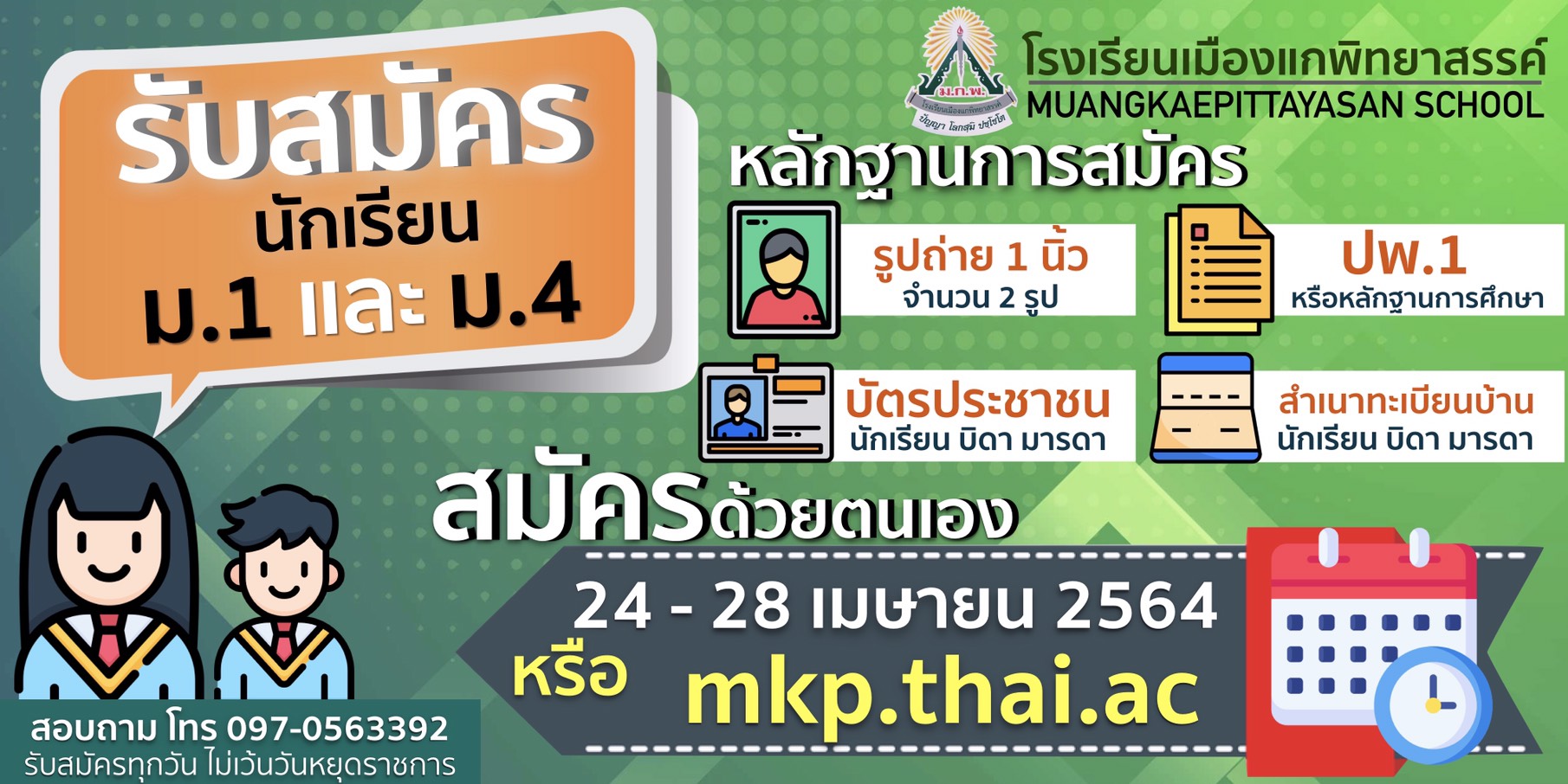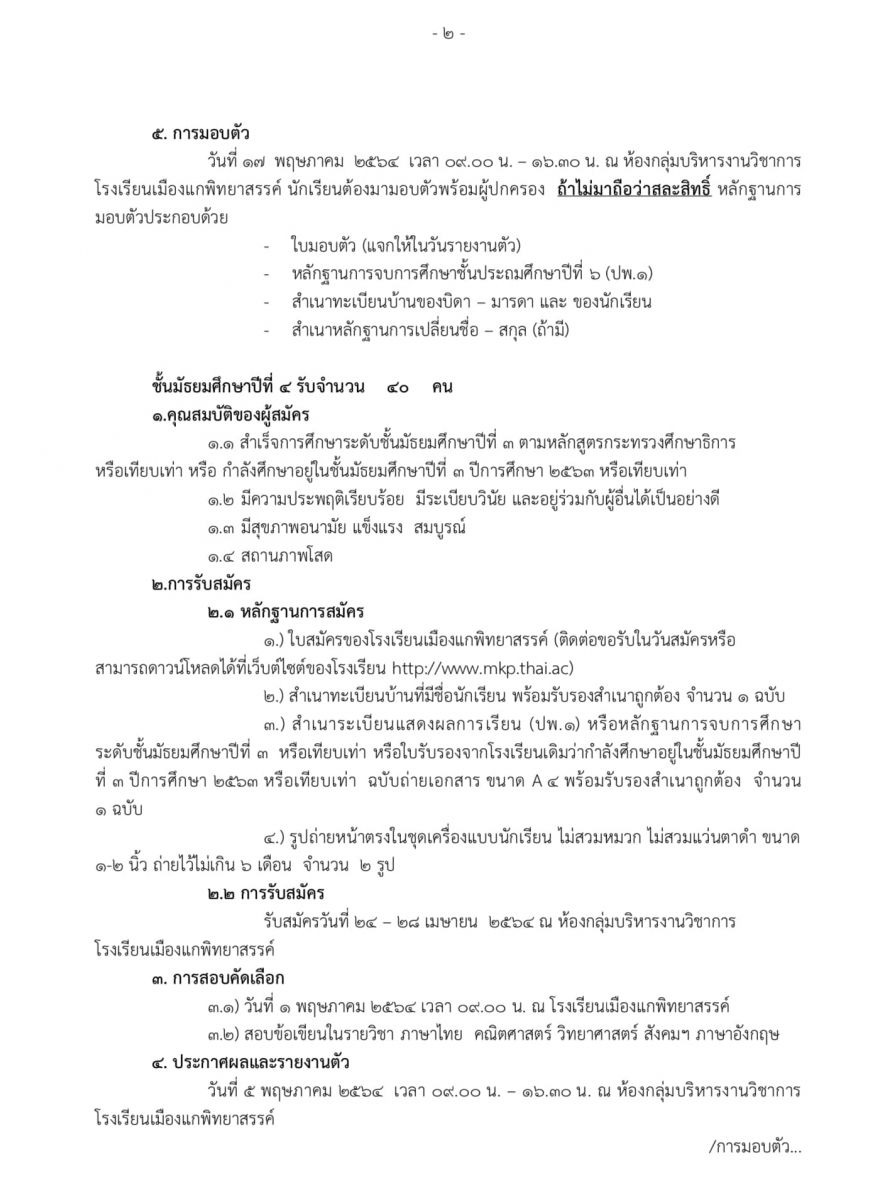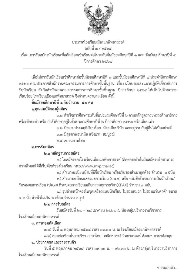 รับสมัครนักเรียนปีการศึกษา 2564