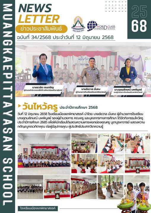 วันที่ 12 มิถุนายน 2658 โรงเรียนเมืองแกพิทยาสรรค์ นำโดย นายชัชวาล มั่นคง ผู้อำนวยการโรงเรียน นางอุดมลักษณ์ นพพิบูลย์ รองผู้อำนวยการ คณะครู และบุคลากรทางการศึกษา ได้จัดกิจกรรมไหว้ครู ประจำปีการศึกษา 2